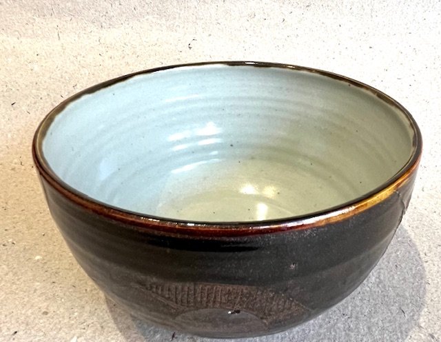 Ulla Hjorth skål med indridset mønster i brun glasur.