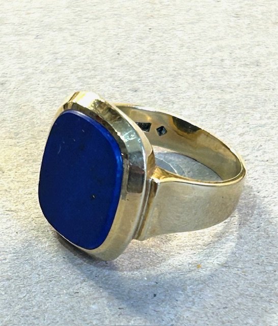Guldring 14K. Stor signet ring med Lapis lazuli, stemplet 585.