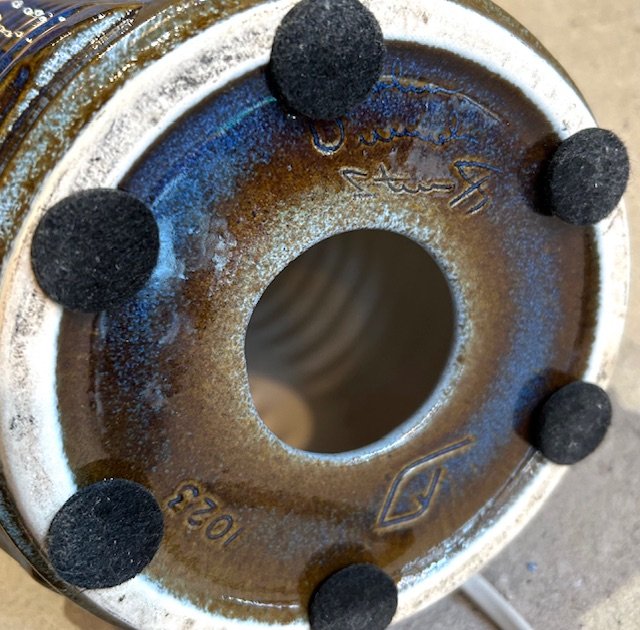 Ejner Johansen for Søholn. Stor bordlampe i mørkeblå glaseret keramik.