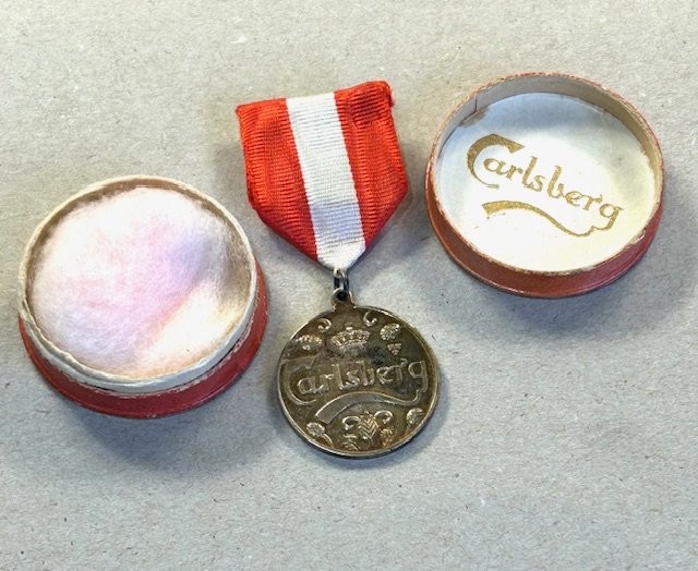 Carlsberg medalje i sølv med originalt bånd og æske.