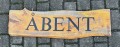 Træskilt, med ÅBENT indfræset og sortmalet på begge sider samt kroge til ophæng.