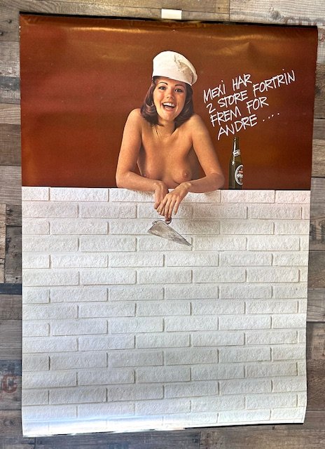 Chamerende forhandlerplakat fra 1970erne, tidstypisk sexistisk.