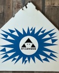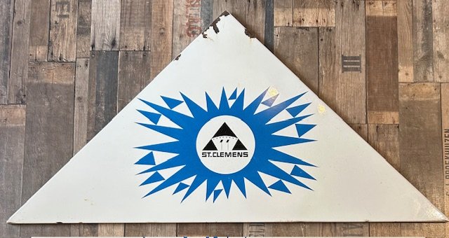 St.Clemens mejeri. Bornholms andelsmejeri emaljeskilt, St.Clemens med rundkirke. NB, flere afslag.